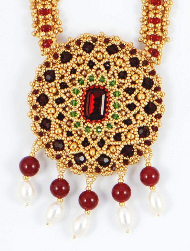 Long siam beaded bezel rani haar necklace Rani haar means queen’s (rani) necklace (haar). It is a heavier and longer than usual necklace. front sideback side Like Loading...