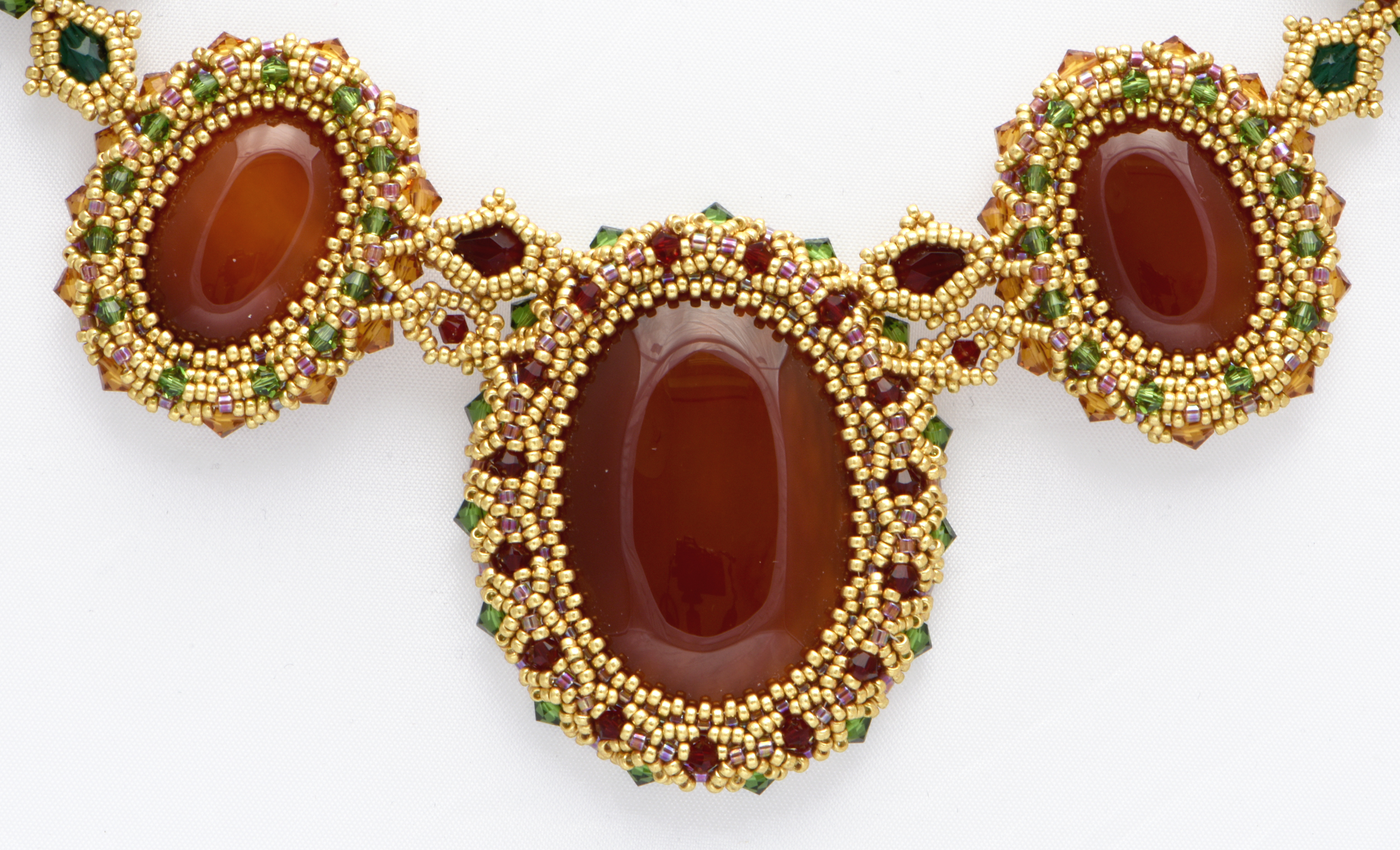 Red agathe beaded bezel necklace