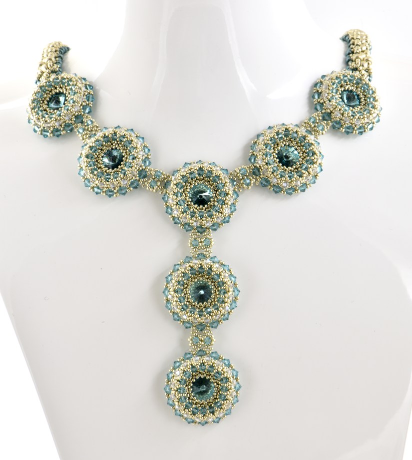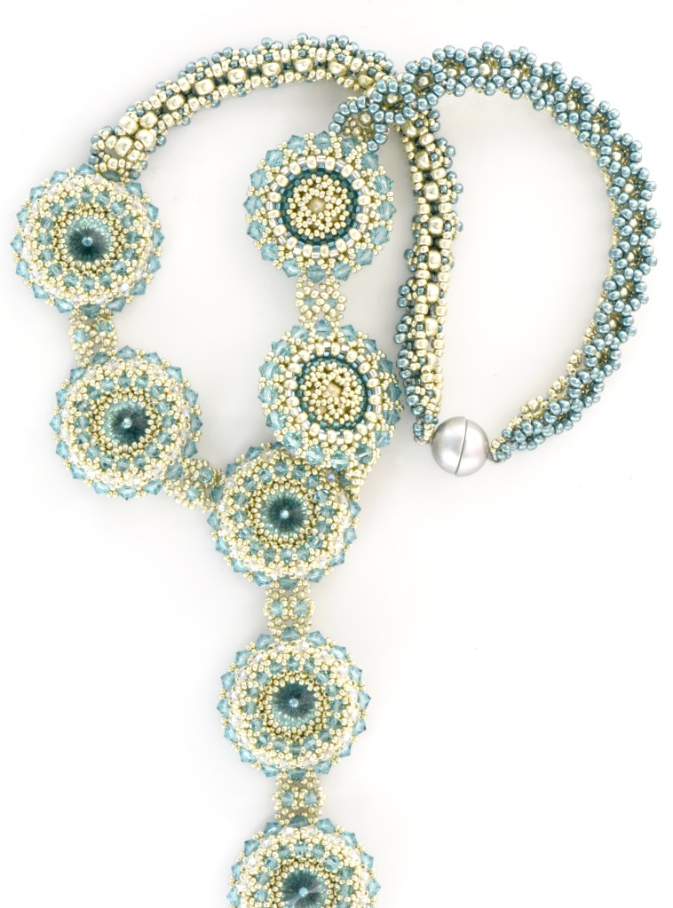 Silver turquoise multi beaded bezel necklace front sideback side Click to share on Pinterest (Opens in new window) Pinterest